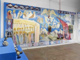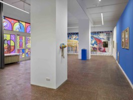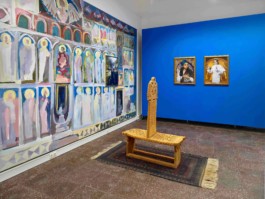 In CONFESSIONALE, Viviana Druga investigates religious and spiritual rituals, forms of confession and purification, and the sacred in general. Inspired by the imagery of the Romanian Orthodox churches, iconostases and large-format installations carry out a specific connection to a performative aesthetic. Galerie im Turm is transformed into an imaginary chapel. An open confessional stool serves as the central sculptural work, through which conventional understandings of guilt and atonement are negotiated. Visitors are invited to make – or listen to – a confession.